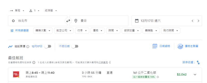 一般來說,大家都會直接買這種機票,也許會再增加搜尋【比較便宜的出發日期】而已。但,這樣買就只是幼幼班,沒啥了不起的。所以我要跟大家介紹的是第二種…..